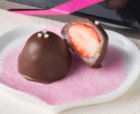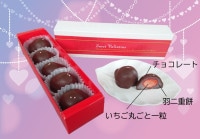 生のいちごを羽二重餅で包んだ当店の人気商品「いちご餅」をチョコレートでコーティングしました。