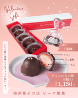 生のいちごを羽二重餅で包んだ当店の人気商品「いちご餅」をチョコレートでコーティングしました。